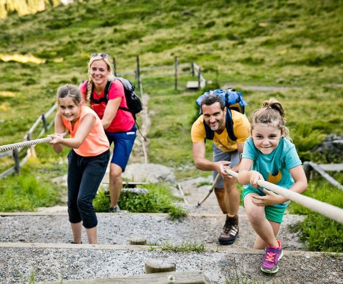 Neben einem umfangreichen Wander- und Bikeangebot mit 400 km an markierten Wanderwegen und ebenso 100en Kilometern an Radtouren in allen Schwierigkeitsgraden gibt es ein großes Angebot an Attraktionen und spannenden Abenteuern für viel Quality Time mit der ganzen Familie. Angefangen beim Berg Kodok mit Montelinos Abenteuerspielplatz, wo man auch Montelinos Wildfütterung beiwohnen kann, über Schnitzas Holzpark mit den vielen hölzernen Spielstationen, dem Wanderlehrpfad im Talschluss, dem größten Hochseilpark Europas mit über 8 km Länge bis zum Geocaching und der spannenden Schatzsuche. Weiter geht es mit dem Slackline Parcours an der Mittelstation der 12er Kogelbahn über den Minigolfplatz in Saalbach Hinterglemm und den Themenpark Teufelswasser im Talschluss. Lassen Sie sich mit der ganzen Familie verzaubern vom alpinen Flair und den vielen Ausflügen in die Welt der Alpen und die Traditionen des Glemmtals. Viele weitere Angebote warten darauf, entdeckt zu werden!