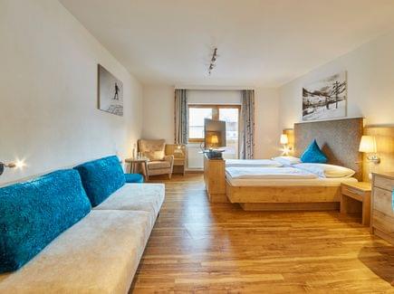 Die im hochwertigen Landhausstil eingerichteten Zimmer sorgen dabei für ein angenehmes Wohngefühl – ganz wie zu Hause. Helle, lichtdurchflutete Räume, Panoramablick, Balkon, gemütliche Sitzecke, und und und… ein traumhafter Aufenthalt im Hotel Johanneshof in Saalbach Hinterglemm ist gewiss!